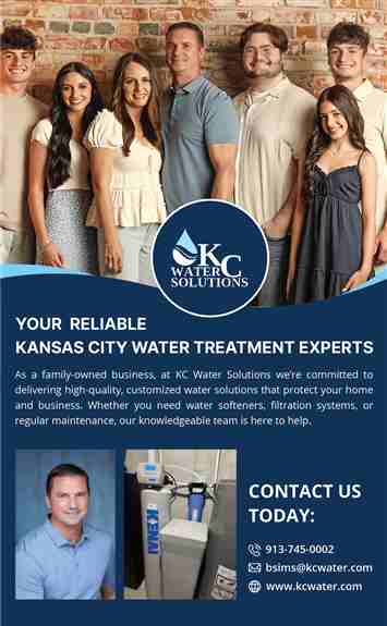 Your Reliable Kansas City Water Treatment ExpertsAt KC Water, we blend decades of experience with personalized service. As a family-owned business, we treat each customer like one of our own, offering industry-leading water treatment solutions and equipment. Discover how we make clean, healthy water accessible and stress-free for your home or business.